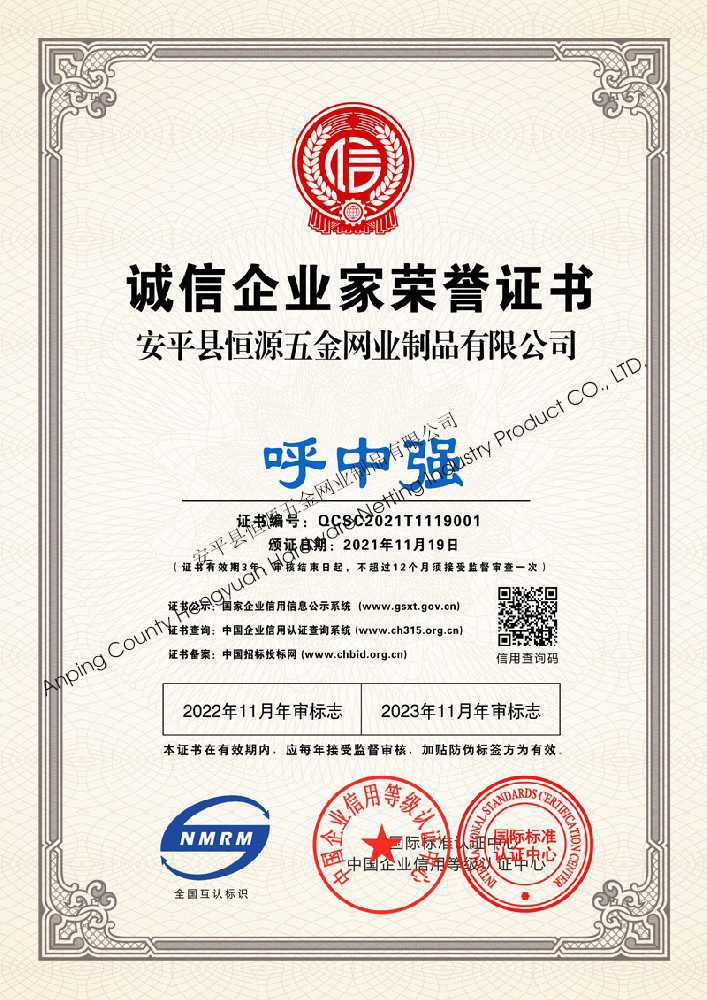 多年來,安平縣恒源五金網業(yè)制品有限公司堅持“科技興企、質量立業(yè)”的經營理念和“誠心為本、客戶至上”的合作宗旨,優(yōu)化生產工藝,打造優(yōu)質產品,提供完善的服務,受到國內外客戶的一致好評,產品行銷全國各地,并出口美國、德國、韓國、日本、臺灣等國家和地區。